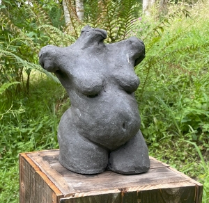 My sculptural work explores the emotional relationship we have with our body and how we represent ourselves. Drawing from a lifetime of health struggles and 25years as a physical therapist, I remove the obvious emotive expressors- the face and hands- and let the body speak for itself. Posture says so much- and resonates with the viewer in their own journey. I often leave my work loose, leaving maker’s marks of thumb print or finger swipe to evoke an approachable work that allows for accessibility between make and viewer- scars, tattoos, lives lived and stories told.