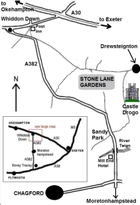 Stone Lane Gardens is situated in the North East corner of Dartmoor National Park, Devon, England. OS map ref: SX 708 907 (OL28 Dartmoor).